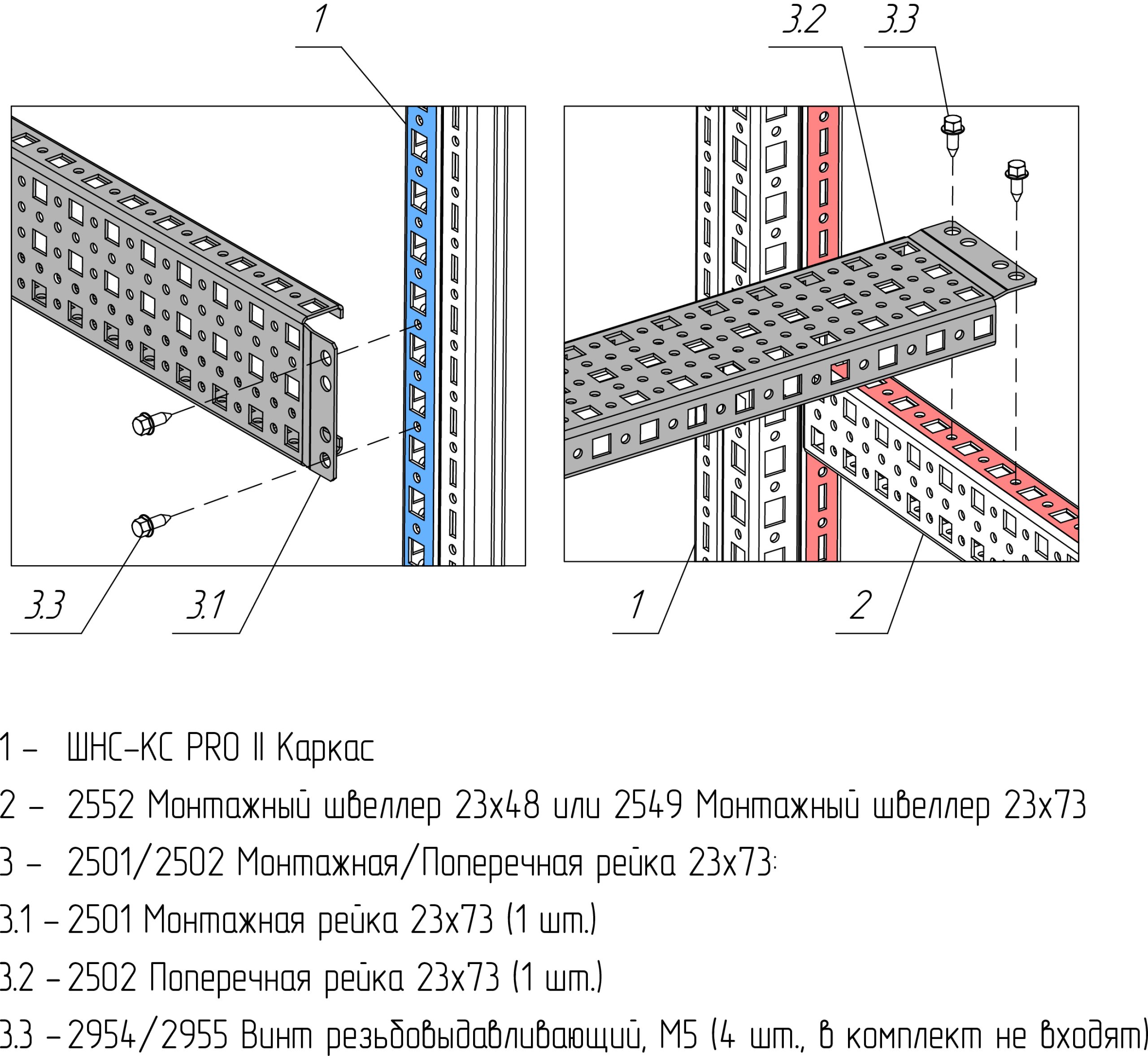 Монтажная рейка крепится на каркас в существующую перфорацию внутреннего монтажного уровня или между навесными элементами, установленными также на внутреннем монтажном уровне.