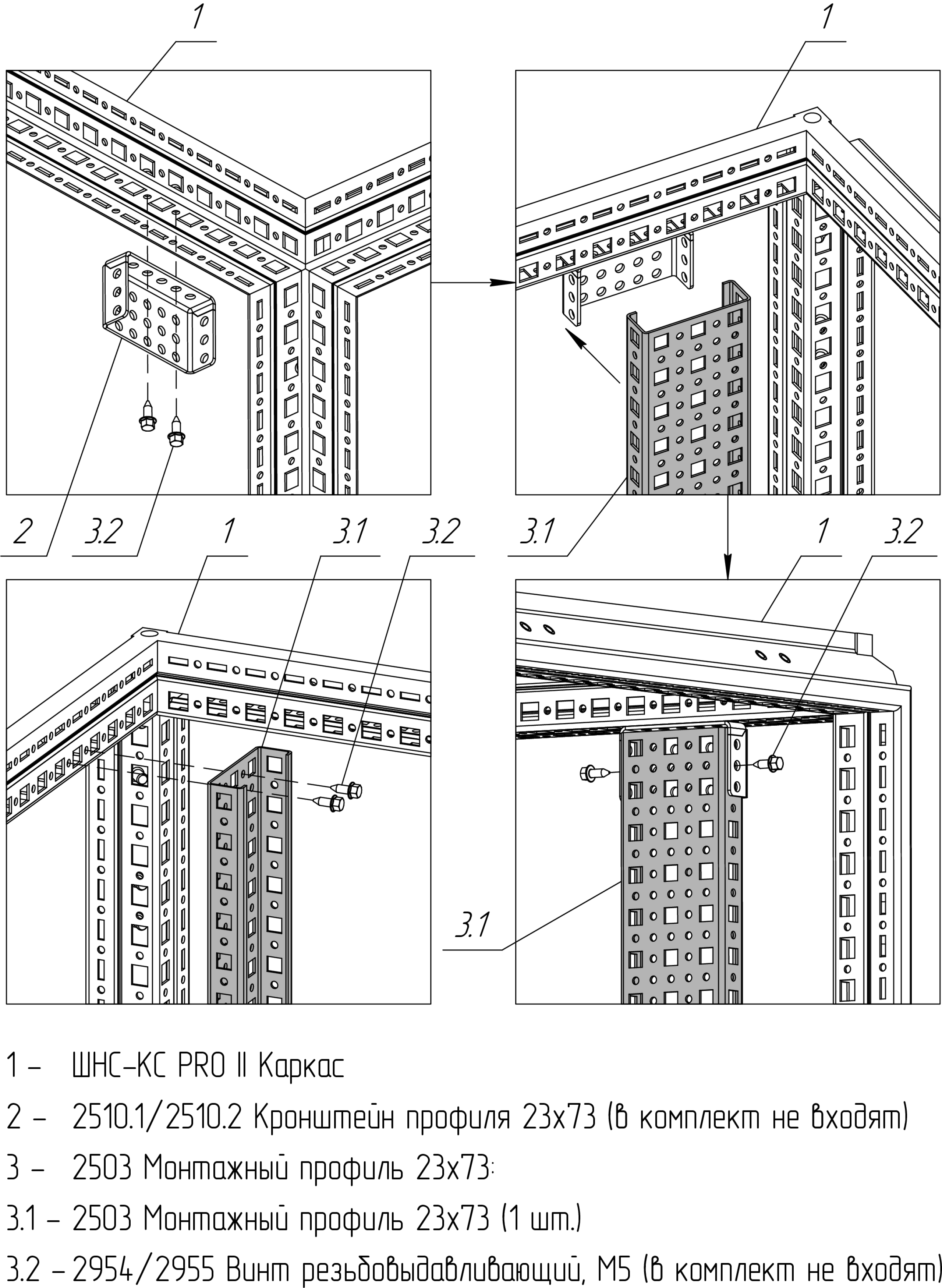 Дополнительно: Кронштейн профиля 23x73, Винты резьбовыдавливающие по DIN7500 D/Винты резьбовыдавливающие по DIN7500 C